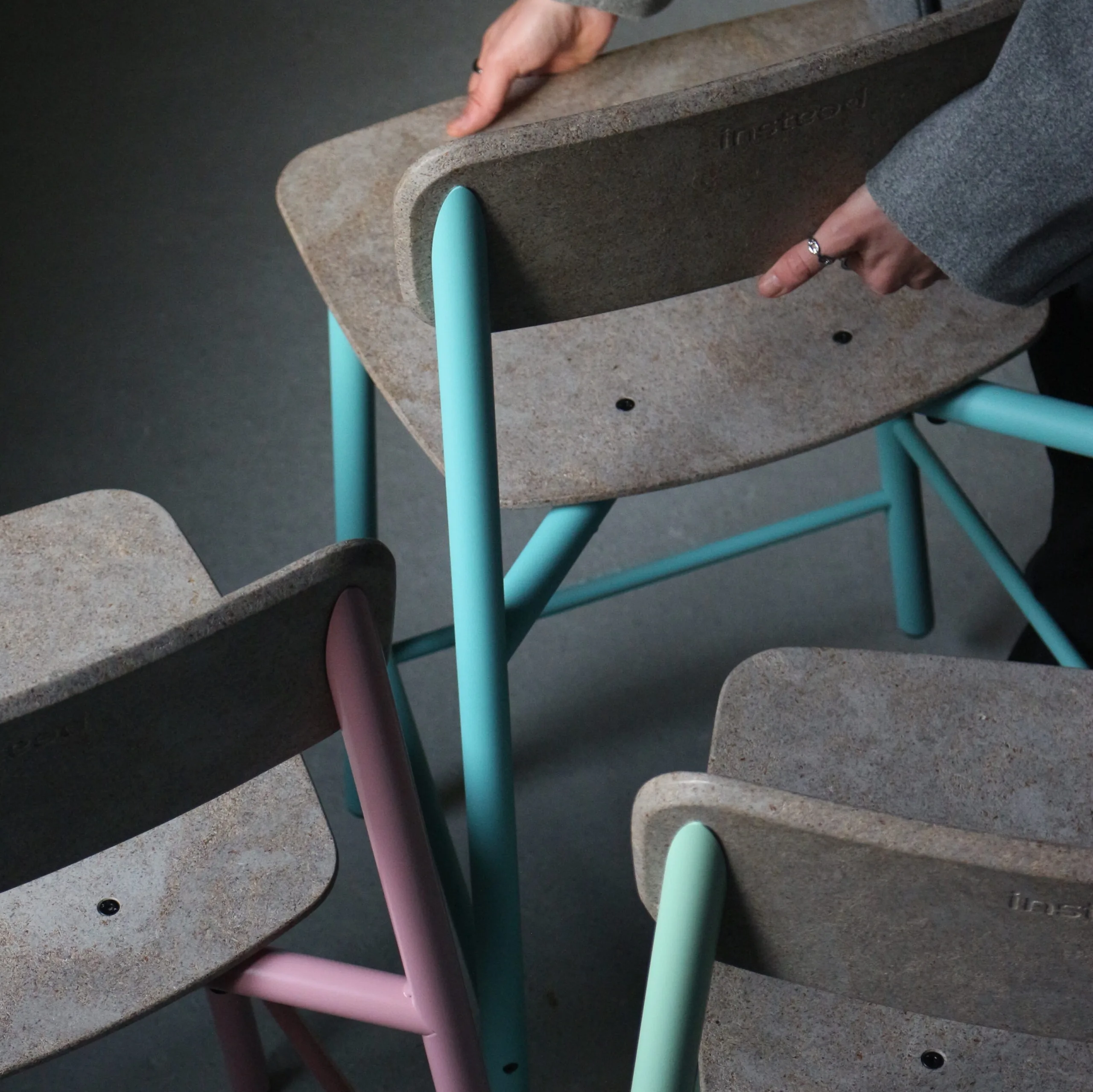 • Assise et dossier en Balt® (mélange éco-responsable de drêches de brasserie et emballages recyclés), disponibles en 3 teintes (brune, blanche, blonde)