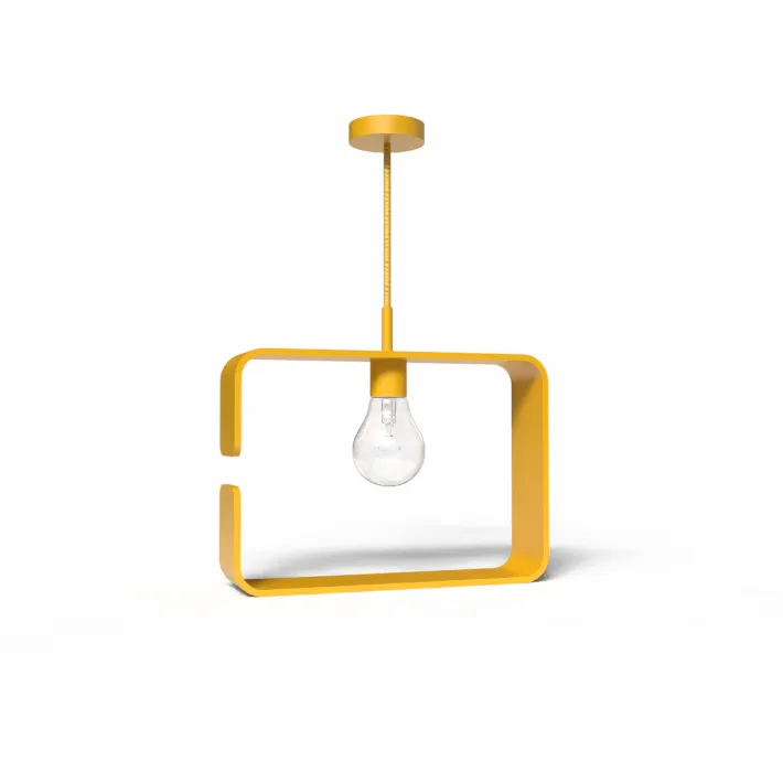 Inspirée du minimalisme géométrique des années 60, cette suspension réinterprète les codes du design épuré pour créer un objet à la fois discret et affirmé. Ses proportions maîtrisées — 35 cm de longueur et 25 cm de largeur — lui permettent d’habiter l’espace sans imposer une présence excessive. La palette de neuf coloris offre une flexibilité d’intégration qui s’adapte à chaque identité visuelle professionnelle.